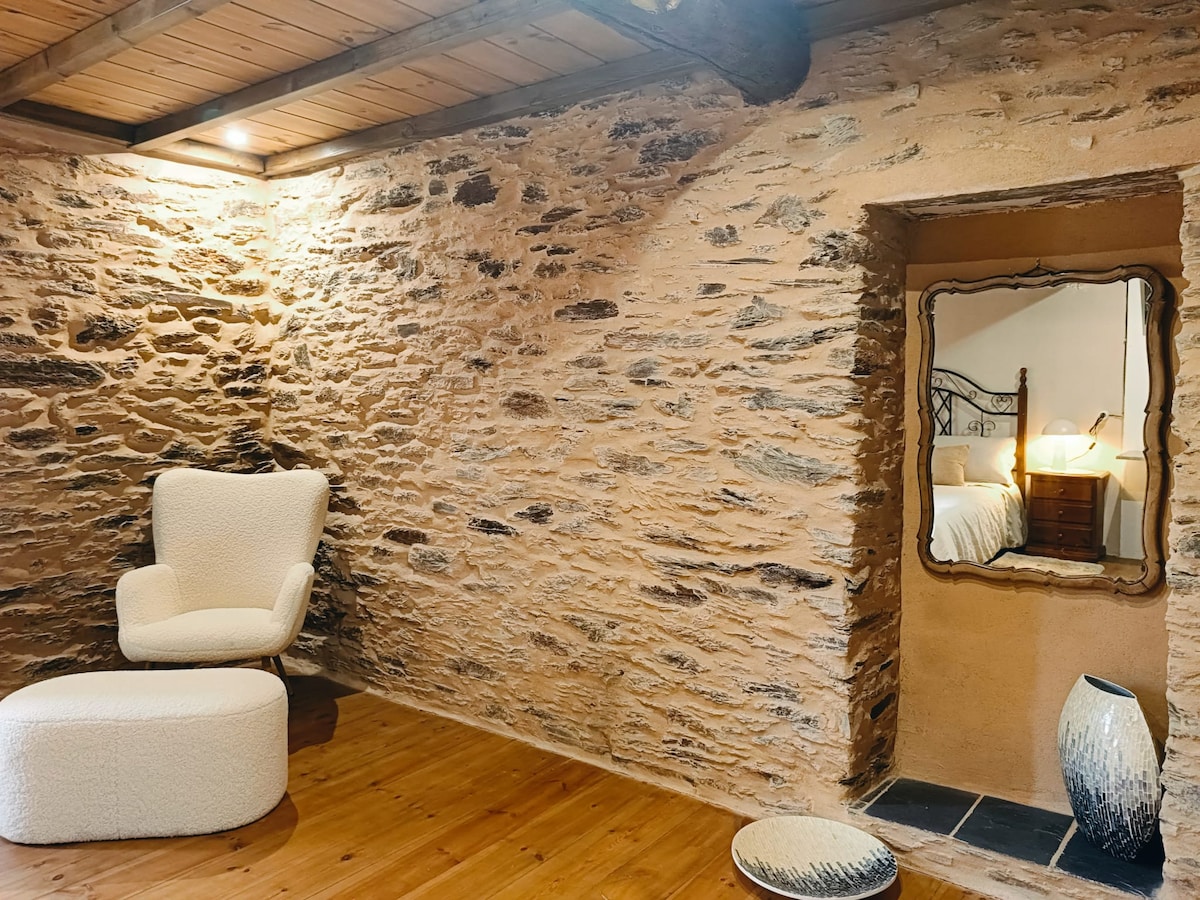 Maginhawa at eleganteng orihinal na bahay na bato mula sa Galicia sa Vieiro, sa munisipalidad ng Viveiro. Ilang minuto sa pamamagitan ng kotse mula sa Covas Beach at sa Cueva de la Doncella. May kapasidad na hanggang 6 na tao, mayroon itong: 2 double bedroom (isa sa kanila na may sofa bed), 2 kumpletong banyo, sala, silid - kainan at kusinang may kagamitan. Mayroon din itong direktang access sa labas ng bahay kung saan masisiyahan ka sa hardin at sa barbecue nito.
