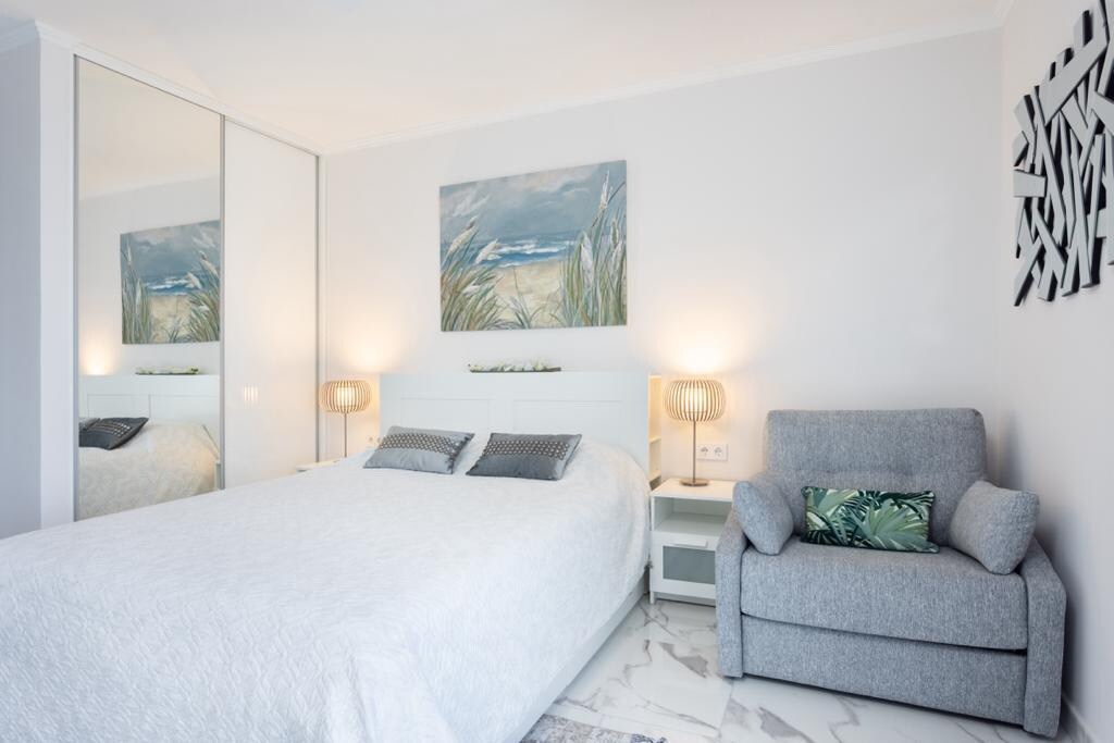 Kaakit - akit na studio na matatagpuan sa ikalawang linya papunta sa karagatan, 1 minuto mula sa beach ng Las Vistas, 3 minuto mula sa Golden Mile at Hard Rock Café. Ang property ay ganap na inayos, halos bago, may kumpletong kagamitan at nilagyan ng lahat ng kailangan mo para sa isang ligtas at nakakarelaks na bakasyon. Ang studio ay may modernong kusina, maliwanag na sala, isang napaka - komportableng sofa bed at isang maayos na banyo. Perpekto ang lokasyon, napakalapit sa lahat ng amenidad, sa likod ng Vintersol clinique sa tahimik na lugar.