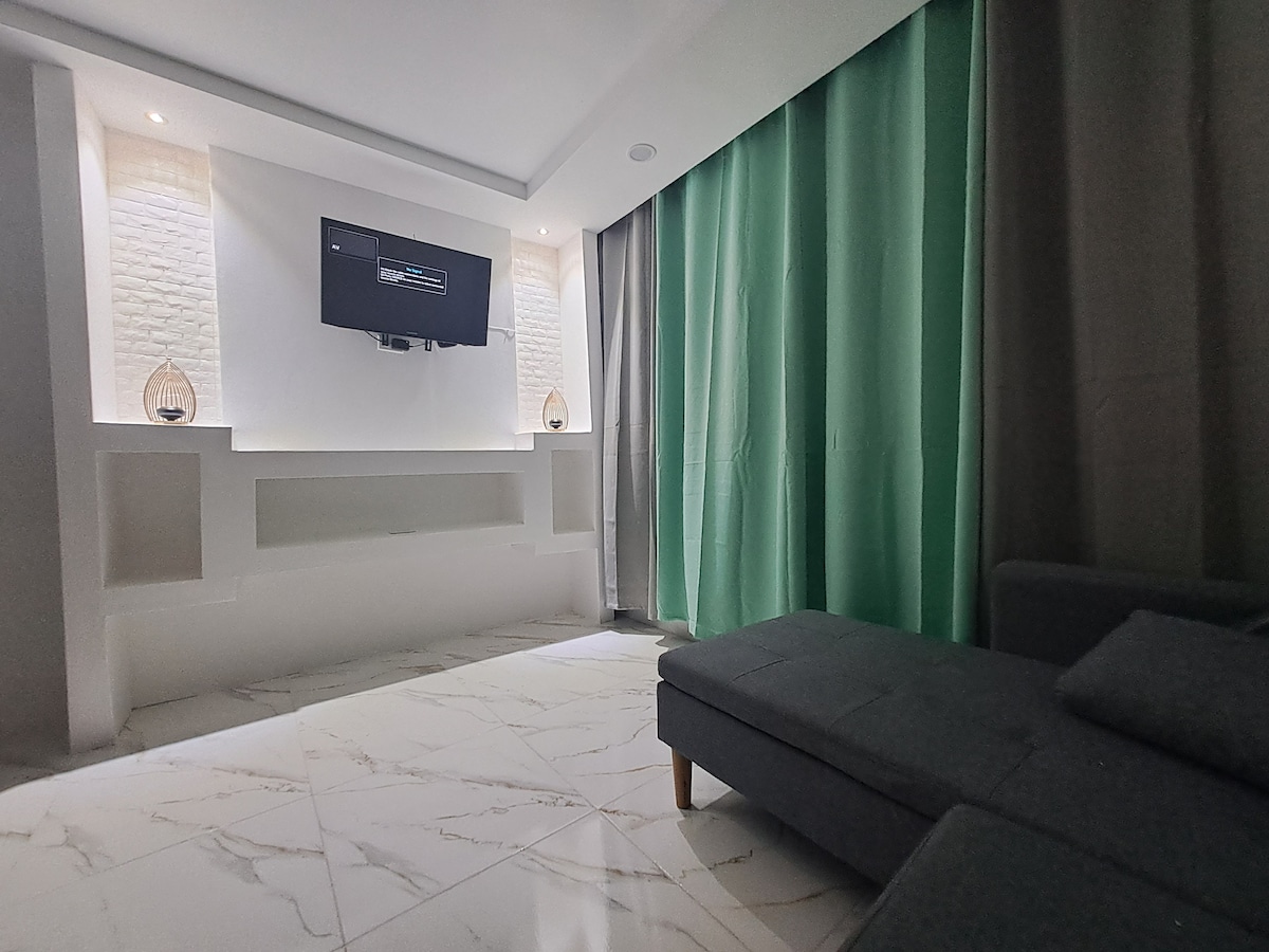 Tangkilikin ang bagong 1 BR 650 sq. feet apartment na may lahat ng mga modernong amenities upang gawing walang hirap, tahimik at nakakarelaks ang iyong pamamalagi. Nagtatampok ang tuluyan ng master bedroom na may banyong en suite at mga tanawin ng magandang balkonahe na perpekto para sa late night drink o kape sa umaga. Nilagyan ang lahat ng kuwarto ng smart voice controlled AC 's. Ang flat ay ganap na pinagana ang Alexa at nagbibigay sa iyong kakayahang umangkop sa paggamit ng mga utos ng boses para sa lahat ng mga ilaw, fan ng silid - tulugan, musika atbp.