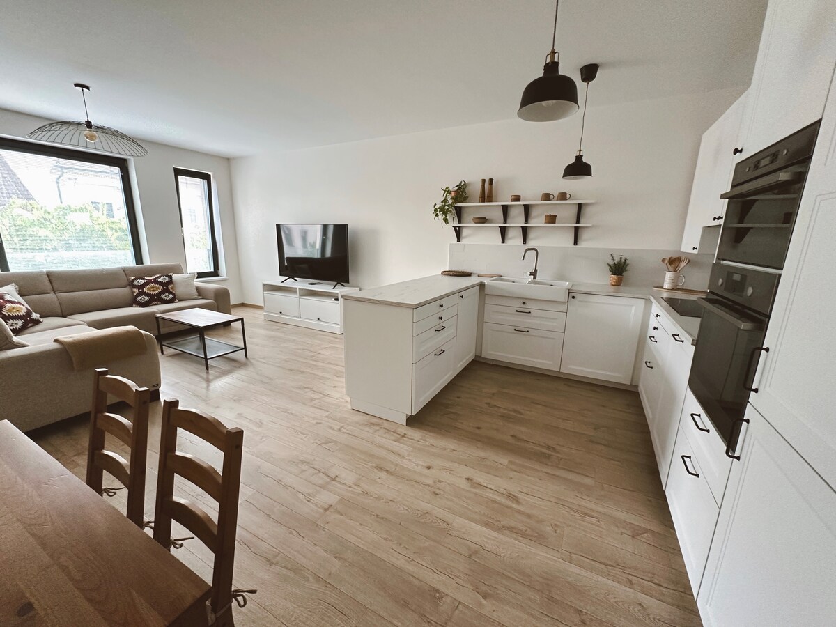 Ang apartment ay angkop para sa mga mag - asawa, negosyante o pamilya na may mga bata at napapaligiran ng kapaligiran ng makasaysayang puso ng Trnava. Sasamahan ka ng kultura, sining at gastronomy sa mga kalye ng Little Rome (kilala sa mga simbahan nito). Sa likod mismo ng mga makasaysayang pader ng lungsod, makakakita ka ng aquapark, mga shopping mall at modernong football stadium. Kabilang sa mga pasilidad na pang - isport ang isang malapit na atletikong complex, isang tennis center, mga kalsada ng bisikleta, golf, isang ice rink at maraming gym.