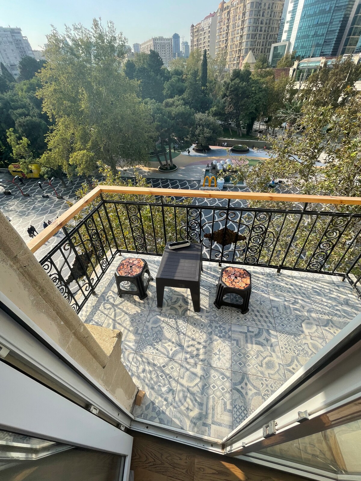 Central Flat na may Balkonahe (1 minuto papunta sa kalye ng Nizami)