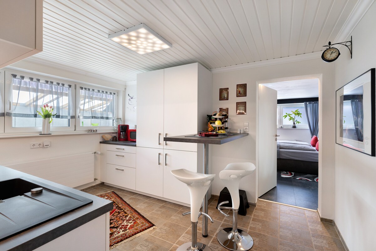 Maganda - naka - air condition - apartment sa attic na may bukas na roof truss kapag hiniling. May bukas na floor plan ang apartment, na may magandang kusina (induction, dishwasher, atbp.) at magandang daylight bathroom na may bathtub. Roof terrace (tinatayang 28 sqm) na may dalawang sun lounger, isang table group at magagandang tanawin! Tandaan: Walang 3 magkakahiwalay na opsyon sa pagtulog. Para sa tatlong tao, ang dalawa ay dapat manatili nang magkasama sa double bed. Hindi angkop ang sofa para sa pagtulog.