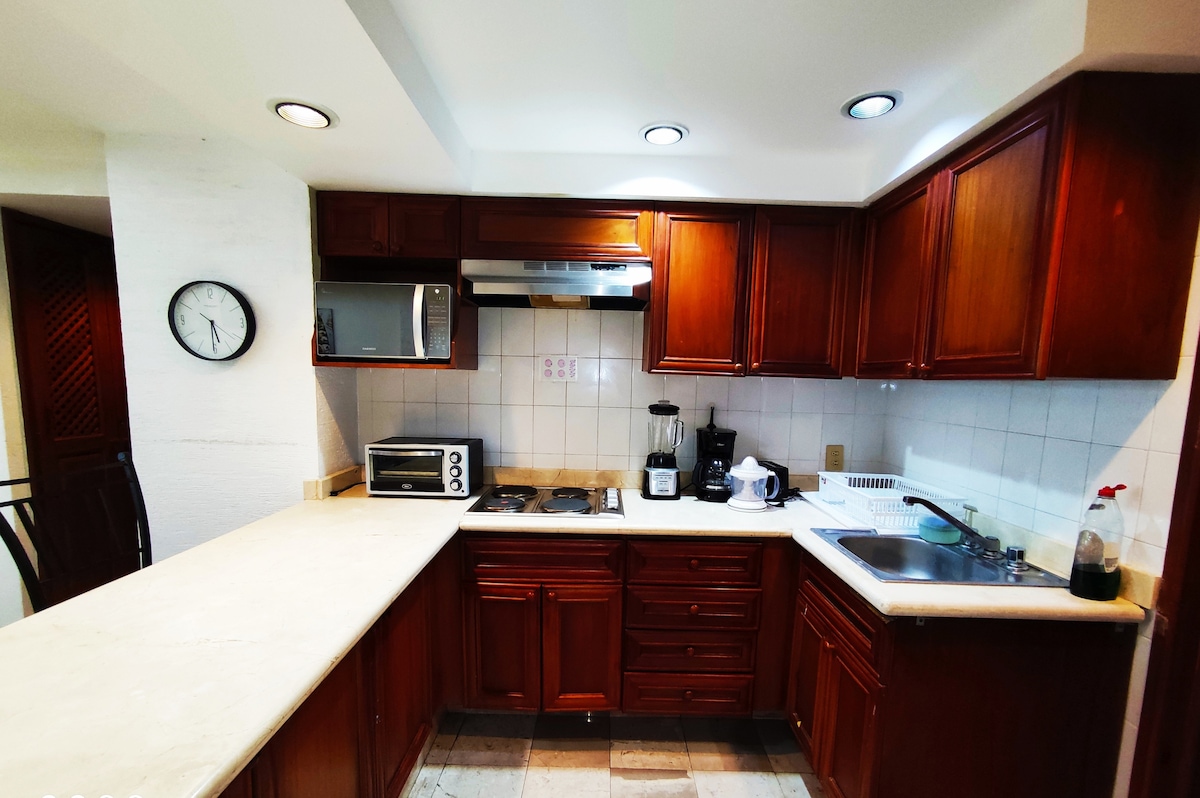 Departamento Hermoso Nuevo, Maluwang, Centric, Marangyang. May estratehikong lokasyon ang lugar na ito: Isang bloke ang layo mula sa Costera Miguel Alemán. Puwede kang maglakad papunta sa beach. 5 minuto mula sa: La Diana Cazadora, Galerías, Centro de Convenciones, Club de Golf, Condesa at Costa Azul. El Rollo Water Park, Mga Restawran, Bar, Beach Club, Walmart, La Escénica at El Famoso Baby 'O. 3 silid - tulugan, 2 kumpletong banyo, pool at common area. Mayroon itong barbecue barbecue, board game, foosball, inflatable.