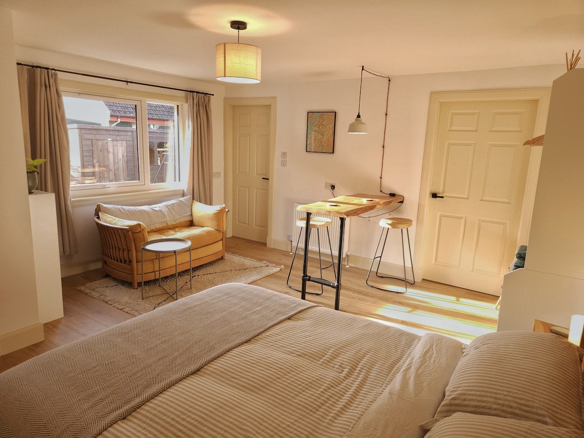 Ang Annexe@18 Perth Place ay isang bagong na - convert na garahe na binubuo ng isang malaking double en - suite bedroom na may mga pasilidad sa kusina at isang decked outdoor seating area. Ang Annexe ay may sariling pribadong pasukan na may paradahan at nasa loob ng bakuran ng aming bahay ng pamilya. Matatagpuan kami sa isang tahimik na residential area 1.9 milya mula sa Fort William town center, may access mula sa aming hardin sa Cow Hill Circuit at kami ay 0.1 milya mula sa pinakamalapit na bus stop.