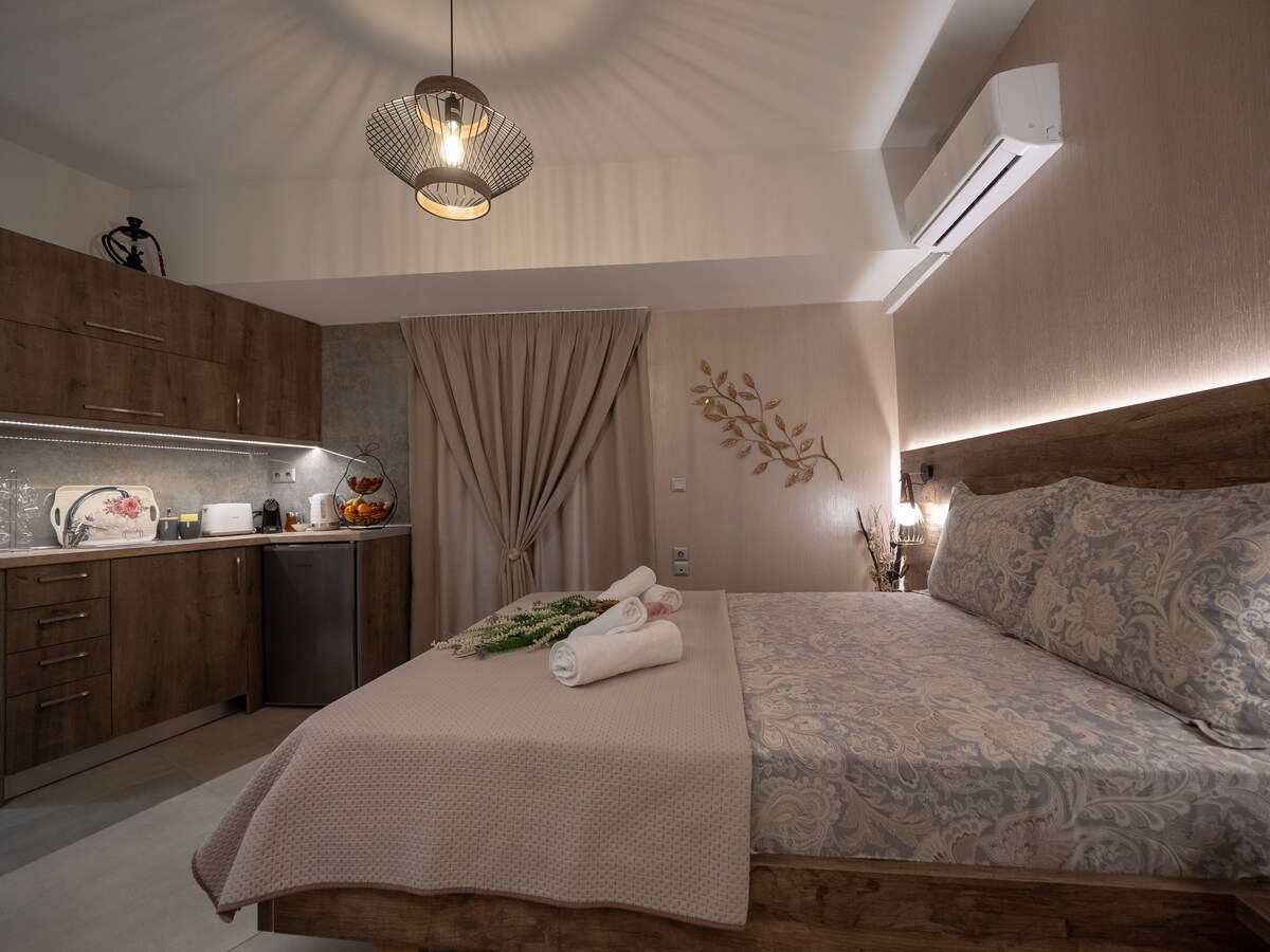 Tuklasin ang walang hanggang kagandahan ng tradisyon ng Cretan sa Artemis Traditional Studio, isang maliwanag na tagong gawa sa bato na puno ng karakter at init. Sa tahimik na patyo, nakakaengganyong kapaligiran, at mga klasikong arkitektura, nag - aalok ito ng perpektong setting para sa romantikong bakasyunan o mapayapang bakasyunan sa gitna ng isla. Isang pambihirang tuluyan kung saan nakakatugon ang pagiging tunay sa kaginhawaan sa isang talagang kaakit - akit na setting ng nayon.