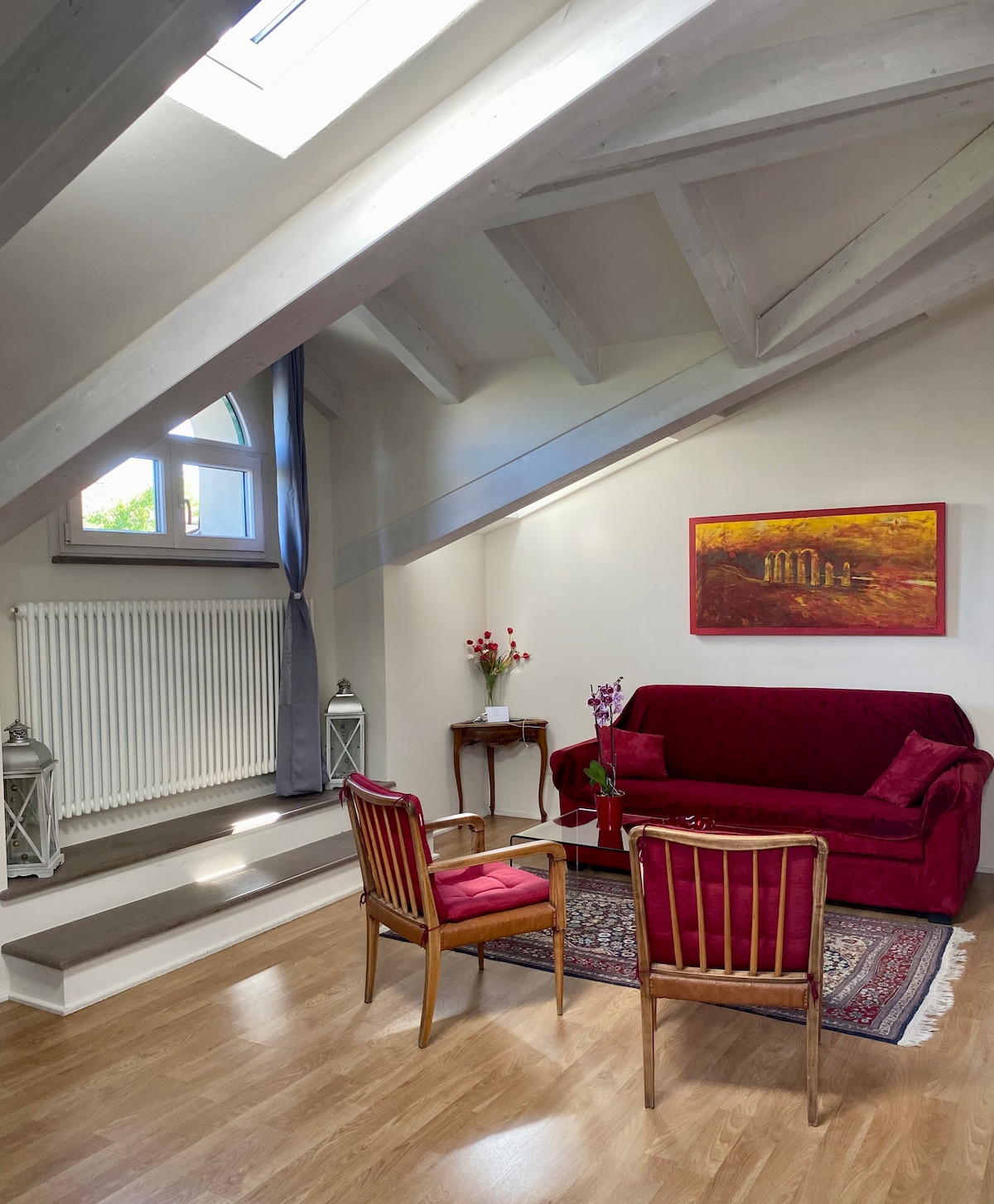 The apartment is located on the main square of the city in Palazzo Scati. Palazzo, founded on the ruins of a Roman amphitheater and pre-existing medieval buildings, belonged since 1614 to the Scati family, recognized as one of the oldest noble families of Acqui Terme. Thanks to careful restoration in 2025, all of the building's authentic elements were preserved. The building was declared a Special Cultural Heritage Site.