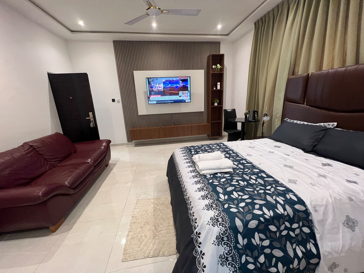 Welcome to Your Home Away from Home Experience comfort and convenience at this beautifully furnished 1-bedroom apartment, ideal for both short and long-term stays. Whether you’re visiting Ghana for business, tourism, or a family visit, this space offers the perfect balance of privacy, security, and modern comfort. the apartment features a spacious bedroom with a comfortable queen-sized bed, clean linens, ample closet space, and air conditioning for a restful stay.