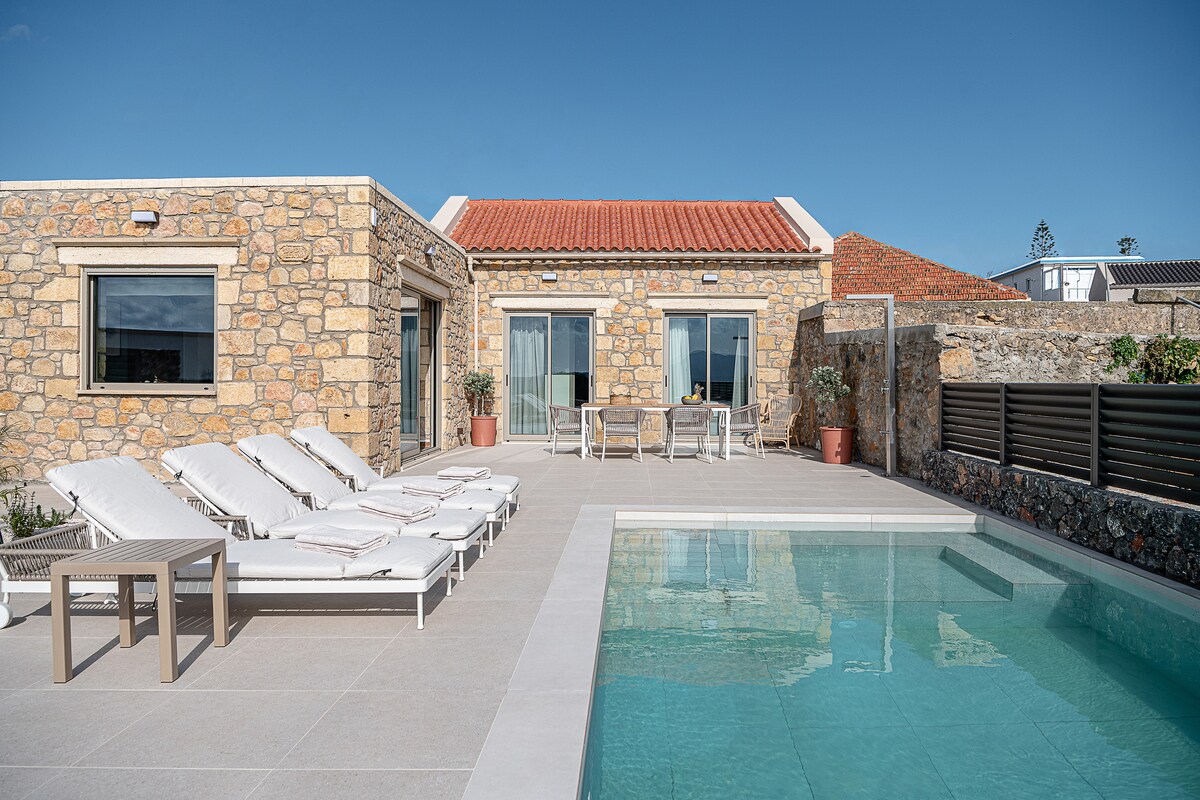 ✩ Tangkilikin ang "tunog" ng katahimikan ✩ Masiyahan sa magagandang tanawin ng dagat at puting bundok ✩ Swimming pool rest area na may tanawin ng bundok ✩ Terrace na may tanawin ng dagat ✩ Binakuran ang lawned garden ✩ Isang nakakarelaks na base na perpektong matatagpuan para tuklasin ang kanlurang bahagi ng Crete ✩ Walking distance sa reasturants at pharmacy ✩ Pribadong Heated Pool (Kapag hiniling nang may dagdag na bayarin: 25 € / araw)