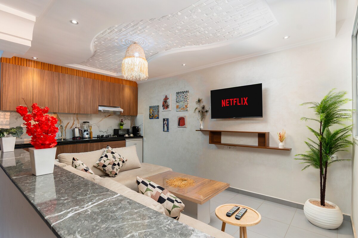 Bienvenue dans votre oasis de confort à Agadir ! Arrivée 24h/24 avec une équipe accueillante Offrez-vous un séjour inoubliable dans un appartement moderne, lumineux et soigneusement décoré, situé dans la résidence calme et sécurisée, à seulement quelques minutes des plages, restaurants et attractions principales d’Agadir.