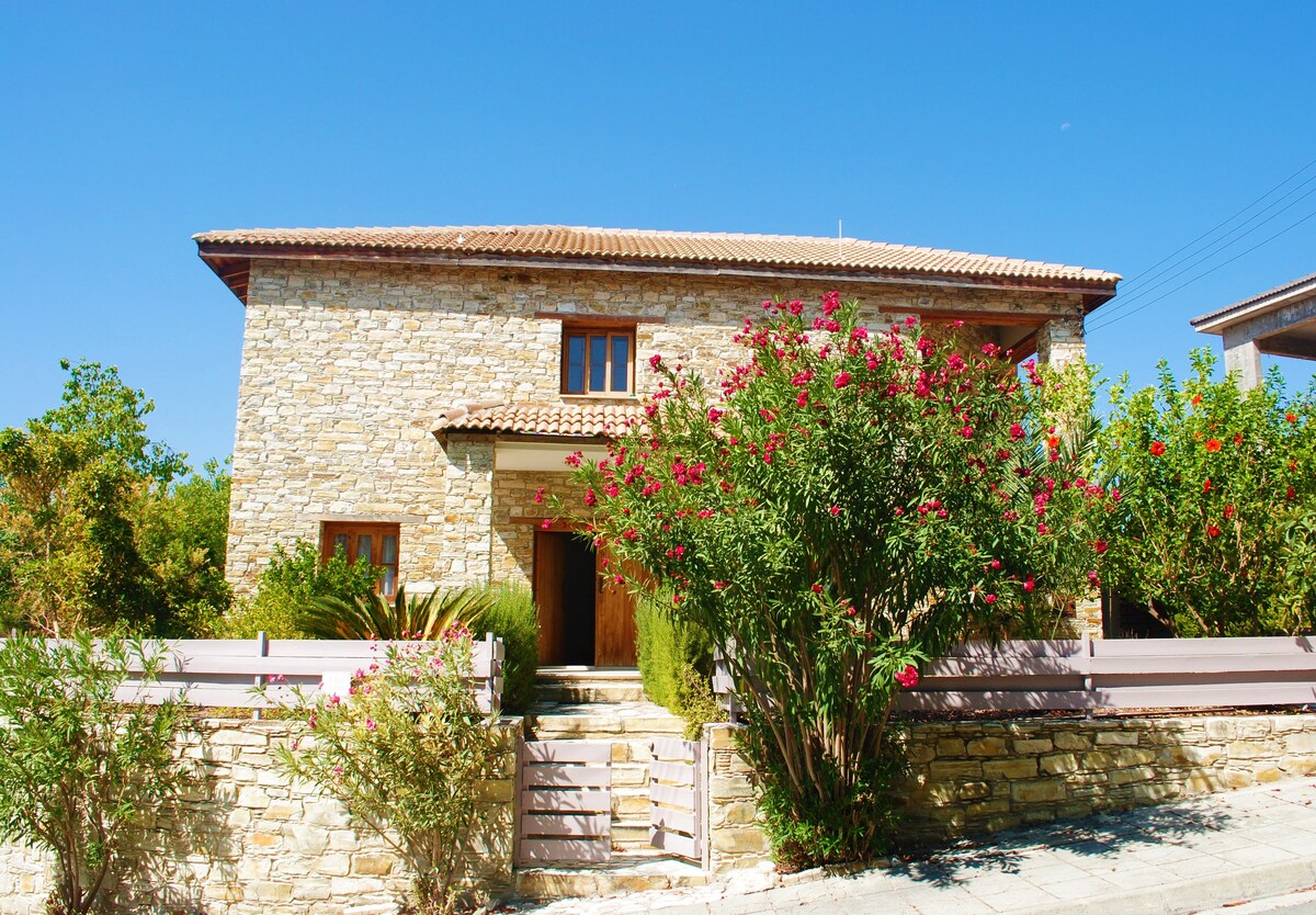 Isang magandang 100+- taong gulang, tradisyonal na naibalik, bahay na gawa sa bato, na may pribadong patyo na matatagpuan sa nayon ng Lympia, 15 minutong biyahe mula sa mga organisadong beach ng Larnaca at 20 minutong biyahe mula sa Nicosia . Tamang - tama para sa isang nakakarelaks na pista opisyal ng pamilya o romantikong bakasyon habang ginagalugad ang rural na Cyprus.