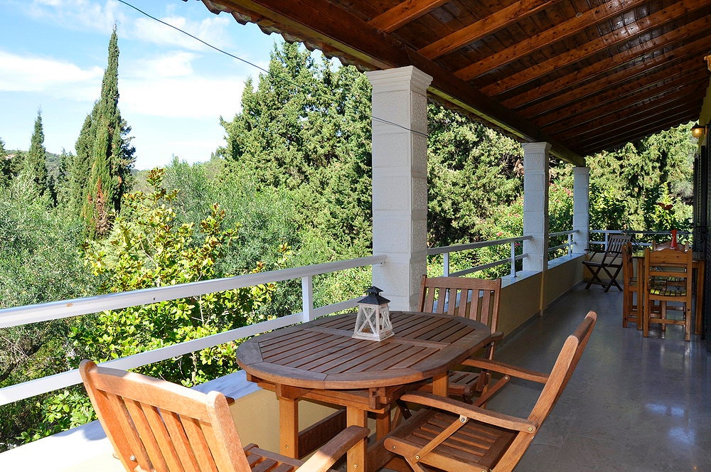 ''Nina Apartments" n.6 Ang mga apartment Nina ay matatagpuan sa isang tinatayang 4,000 sqm plot na may luntiang mga halaman sa Mediterranean at isang maganda, maayos na hardin sa isang tahimik na side valley ng bay ng Agios Georgios Pagon (Pagi) sa Corfu. Ang bahay ng apartment na Villa Nina ay matatagpuan tinatayang. 200 m mula sa tinatayang 3 km ang haba na mabuhangin na dalampasigan ng baybayin. Mga 200 m din ang layo (sa direksyon ng beach) may ilang mga tavern at isang maliit na supermarket. Sa beach ay mayroon ding malawak na water sports na inaalok.