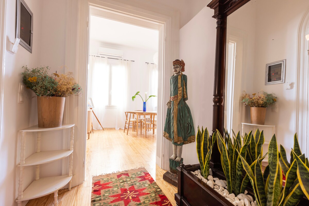 Ang aking tahanan (80m2) ay matatagpuan sa gitna ng Old Town ng Corfu, mga 300m mula sa Liston at Spianada. Perpektong batayan ito para tuklasin ang bayan at ang isla, na matatagpuan sa isang kapitbahayan na tinatawag na Evraiki. Halos lahat ng kakailanganin mo tulad ng sobrang pamilihan, restawran, panaderya, parmasya e.t.c. ay nasa maigsing distansya. Ang isang libreng paradahan ng munisipyo, isang istasyon ng taxi at bus stop ay napakalapit (60 -100 m).