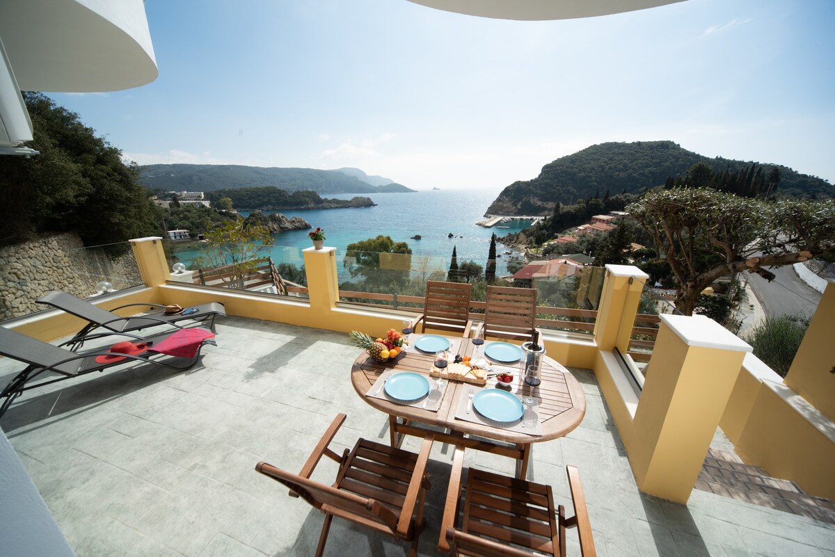 Matatagpuan ang aming akomodasyon sa sentro ng Paleokastritsa, limampung metro ang layo mula sa isang beach. Ang bahay ay may dalawang apartment na may malalaking balkonahe at kamangha - manghang tanawin ng dagat mula sa Paleokastritsa. Apartment 1 : isang silid - tulugan, sitting room na may 2 kama at 1 sofa, kusinang kumpleto sa kagamitan, banyo at isang malaking tanawin ng dagat terasse . Apartment 2: isang silid - tulugan, sitting room na may 2 kama, kusinang kumpleto sa kagamitan, banyo, washing machine at isang malaking buong balkonahe ng tanawin ng dagat.