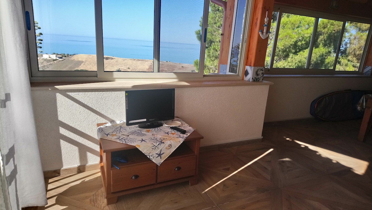 Appartamento in villa immersa nel verde con vista mare sulla splendida baia di Giallonardo. Al confine tra due graziosi paesini della costa agrigentina Realmonte e Siculiana, vicino Scala dei Turchi, Valle dei Templi, Porto Empedocle (la Vigata di Montalbano), Torre Salsa, Eraclea Minoa, Le Pergole. Due comode stanze con cucina e salottino vista mare. Sala da bagno dotata di tutti gli accessori, lavandino, bidet, wc e doccia. Aria condizionata. Ricarica per auto elettrica. Pannelli solari