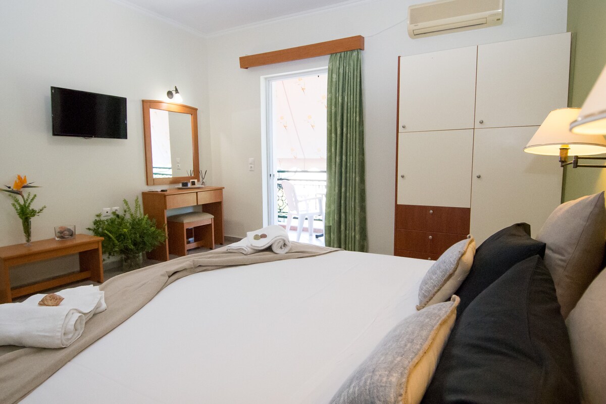 Ang mga kuwarto ni KATERINA ay payapang makikita sa North - East coast ng isla ng Zakynthos, 15 km mula sa airport at 10 km mula sa kabisera ng isla, Zante. Ang maikling distansya mula sa malalim na asul, malinaw na kristal na tubig ng kalapit na beach, Psarou, at ang kamangha - manghang tanawin mula sa mga kuwarto ay ginagawang perpekto ang lokasyon para sa mga mag - asawa pati na rin ang mga pamilya na naghahanap upang tamasahin ang mapayapa at nakakarelaks na bakasyon, habang 5 minuto lamang ang layo mula sa Tsilivi, isa sa mga isla nightlife "hotspot". Ang mga kuwarto ni KATERINA ay perpekto para sa 2 -3 tao. Ganap na inayos ang lahat ng kuwarto, na may dalawang single bed, air - conditioning, at TV, kusina na may lahat ng kinakailangang kagamitan at refrigerator. Kasama rin sa mga ito ang WC na may shower, at isang inayos na veranda na may tanawin ng dagat at hardin. Litrato Sa aming mga kuwarto, makikita mo ang lahat ng amenidad para sa isang kaaya - aya at nakakarelaks na pamamalagi. .Magandang lokasyon .(nakatago ang website) .Tingnan ang dagat .Paradahan .Room service at pagpapalit ng mga sapin kada tatlong araw .Car Rental kapag hiniling .BBQ