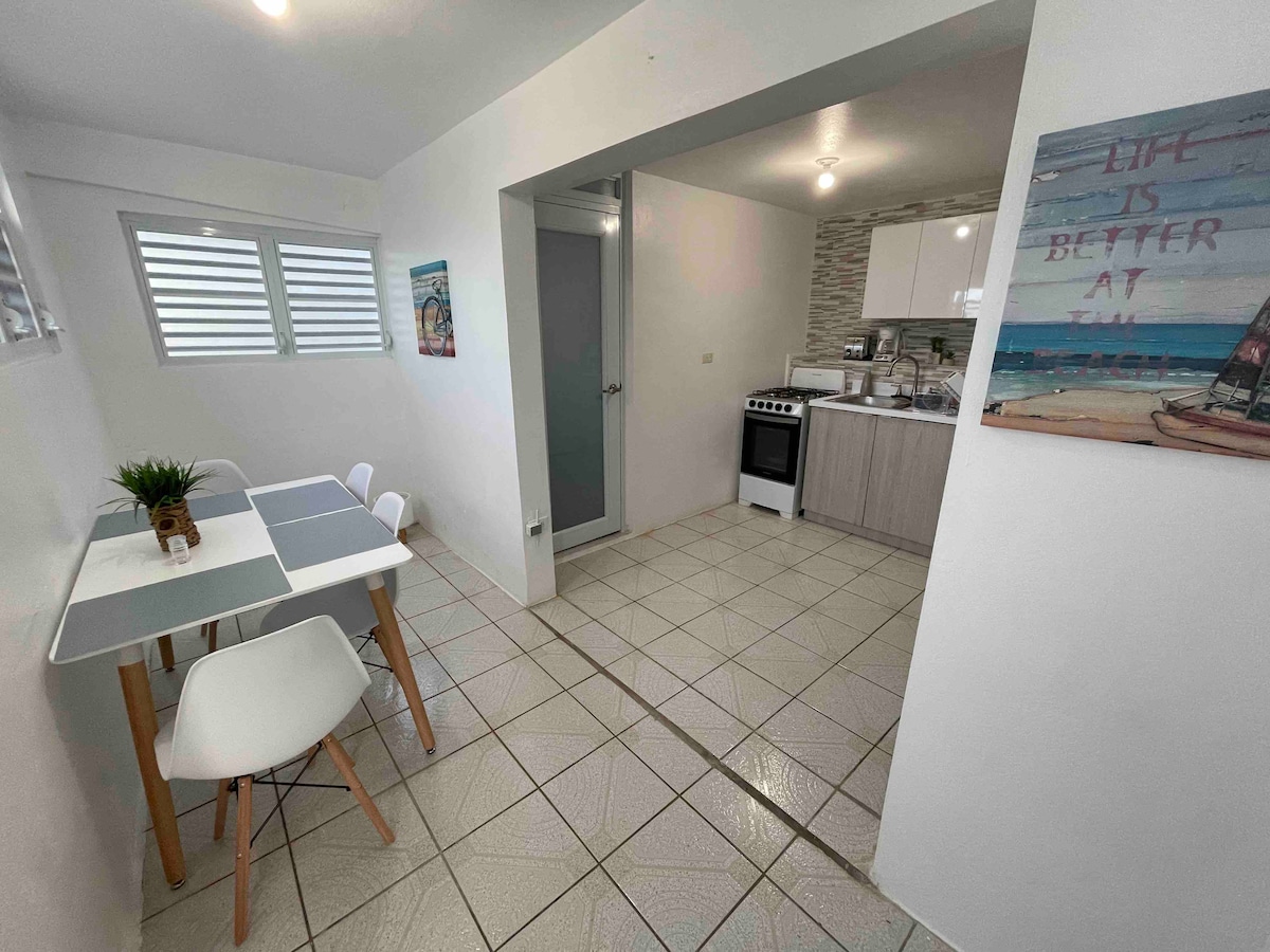 Ang naka - istilong apt na ito ay perpekto para sa malayuang trabaho at may pribadong pasukan, open space layout na may maliit na modernong kusina, sofa, TV, 100 mb wifi, 1 Queen size bed na may Memory foam mattress, A/C, modernong banyo, 1 maliit na lakad sa aparador. 10 minuto ang layo mula sa Aguadilla Airport (BQN) at lahat ng beach sa paligid, 30 minuto mula sa Rincon at mga 1:45 mula sa San Juan.