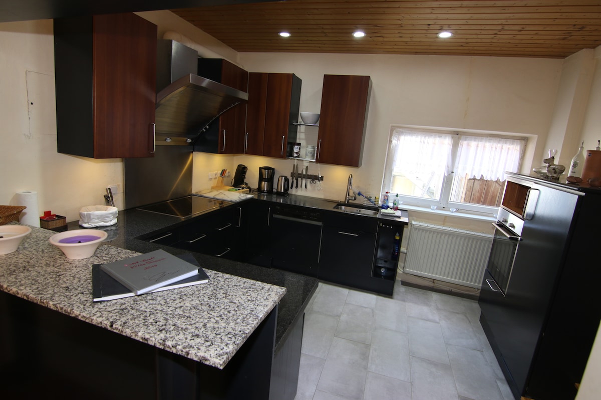 Nag‑aalok ang bagong ayos na 50 sqm na flat namin sa Dinkelscherben ng modernong kaginhawa para sa mga pamilya, magkarelasyon, business traveler, at mahilig sa kalikasan. May kuwarto, banyo, pasilyo, at sala, at may coffee machine, kettle, microwave, projector, hairdryer, plantsa, at Wi‑Fi. Hanggang 5 ang makakatulog, may baby cot kapag hiniling, puwedeng magsama ng alagang hayop. Mga blackout curtain, screen para sa insekto, at 15 minutong lakad papunta sa istasyon ng tren. Komportable at kaaya‑aya ang aming tuluyan dahil idinisenyo ito para sa mga pamilyang may mga anak at alagang hayop.