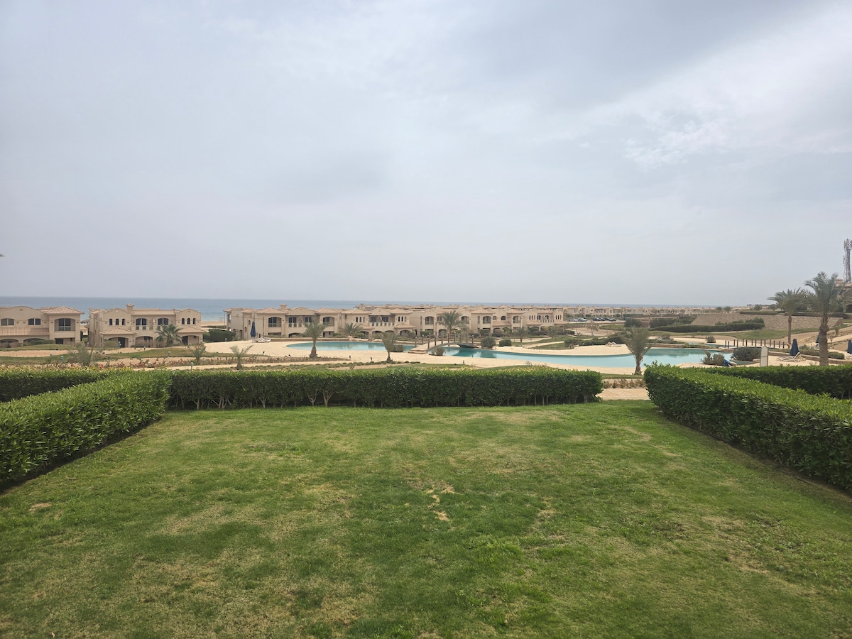2Br Chalet pool at tanawin ng dagat, malapit sa dagat, sokhna