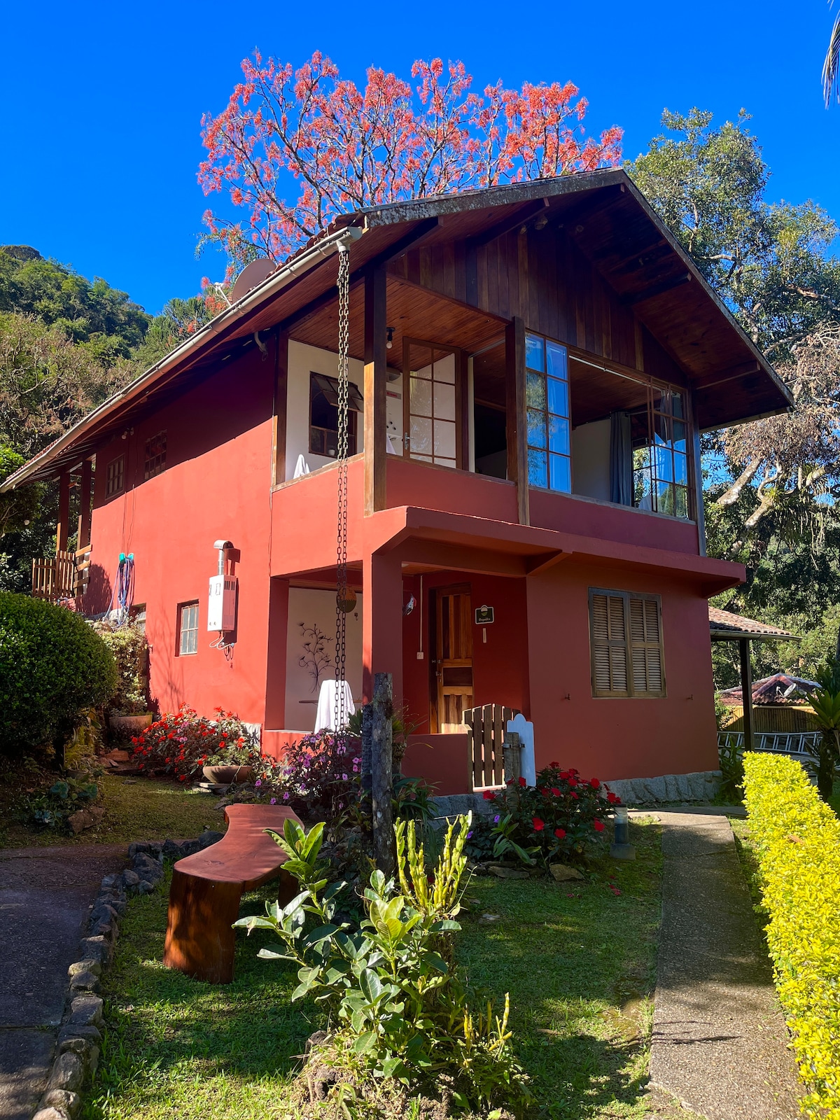 Romantikong bakasyunan sa gitna ng kalikasan. Maaliwalas at romantikong chalet na may bathtub at fireplace, napapaligiran ng kalikasan, at perpekto para sa biyaheng pang‑dalawa, pero puwedeng tumanggap ng pamilyang hanggang 4 na tao (walang dagdag na bayad para sa mga batang hanggang 5 taong gulang). Matatagpuan sa isang lugar na 4,000 m2 ng Atlantic forest sa paanan ng Serra de Itatiaia, na may 2 stream na dumadaan sa property (napakahusay para sa pagpapahinga sa pakikinig sa tunog ng umaagos na tubig), na may magandang natural na water pool at toboggan. I-follow kami sa Instagram @casadolobopenedo