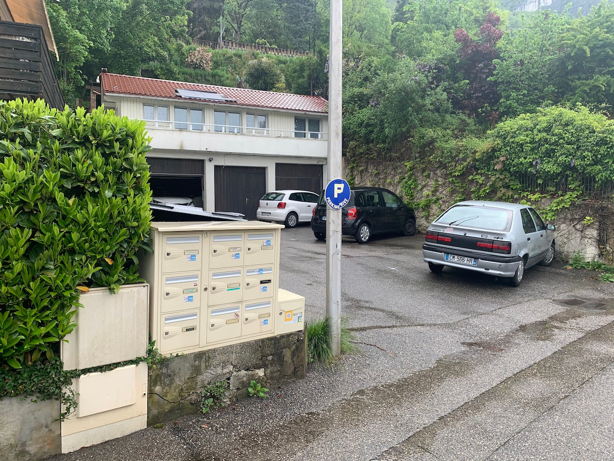 Ang apartment75m2, na kayang tumanggap ng 4–6 na bisita, ay may magandang tanawin ng lungsod at mga bundok sa paligid nito. Maganda ang lokasyon nito dahil malapit ito sa pedestrian zone kung saan madaling mapupuntahan ang lumang bayan at mga baybayin ng lawa. Isang mahusay na panimulang punto para sa mga tuklas at aktibidad na inaalok sa Alpine setting na ito na ang lungsod ng Annecy. Mga water sport, pagha‑hike sa bundok, pag‑akyat sa bundok, free flight, canyoning, pagbibisikleta, atbp.