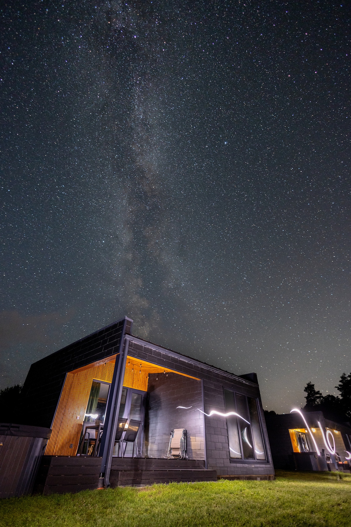 Maligayang pagdating sa iyong pangarap na bakasyunan na matatagpuan sa gitna ng kagubatan! Nag - aalok ang kaakit - akit na maliit na bahay na ito ng natatanging bathtub na matatagpuan mismo sa sala, kung saan maaari kang magbabad sa init habang tinatangkilik ang tanawin ng kagubatan sa pamamagitan ng mga bintana. Lumabas para makahanap ng maliit na sauna na may nakamamanghang glass wall. Ito ang perpektong lugar para magrelaks pagkatapos ng isang araw ng pagtuklas sa kakahuyan. Ang sauna ay nangangailangan ng paghahanda at ito ay karagdagang serbisyo na hihilingin nang may bayad.