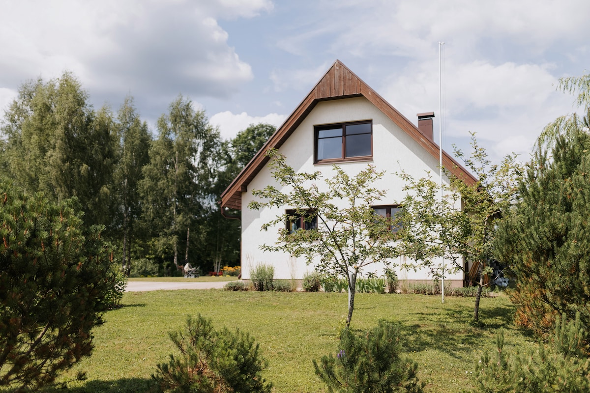 Cozy holiday house LIELMEŽI na matatagpuan sa tahimik na kalikasan 60km mula sa Riga. Magandang lugar para masiyahan sa katahimikan at kalikasan na malayo sa mga ingay ng lungsod. Ang bahay ay may dalawang antas. Sa ibabang palapag, may komportableng sala na may fireplace, kusina, banyo, at sauna. Sa ikalawang palapag, may 3 silid - tulugan, isang maliit na bulwagan na may balkonahe at palikuran. May dalawang single bed ang bawat kuwarto na puwedeng gawing double bed. O kaya naman - puwedeng gawing 2 single bed ang double bed sa bawat kuwarto.