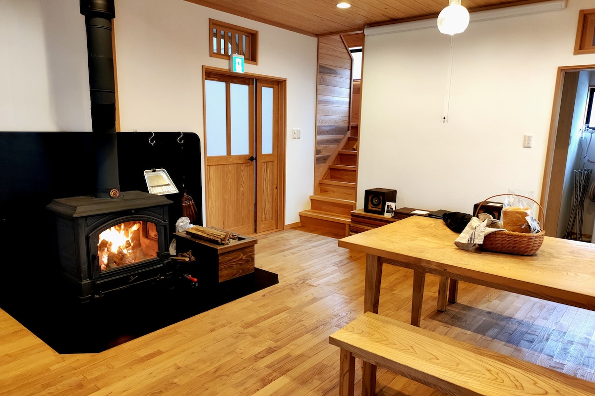 Ang "MANA" ay isang magandang bahay na yari sa troso na napapaligiran ng kagubatan ng Nasu at batis na kayang tumanggap ng hanggang 15 tao Gisingin ang sarili sa tunog ng malinaw na batis at kanta ng mga ibon, at sa gabi, pagkatapos tumingin sa mabituing kalangitan sa barrel sauna sa kagubatan, makakatulog ka na.Pribadong magagamit ang kahoy na deck, barrel sauna, nakahilig na upuang Totonou, at malaking BBQ grill! Susuportahan ka namin ng impormasyon tungkol sa mga atraksyong panturista at restawran ng Nasu.Ipinakilala ang WiFi 10Gbps.Available sa English Mga workcation kung saan puwede kang mag - enjoy sa sauna at BBQ kasama ng isa 't isa, mga glamping couple at pamilya, snowboarding kasama ng mga kaibigan, skiing, golf trip, mga kampo ng pagsasanay ng kompanya, at marami pang iba! IH kalan, refrigerator, espresso machine, at lahat ng pinggan at kagamitan sa pagluluto.Ganap din itong nilagyan ng dishwasher at washer at dryer. 3 minutong lakad ito papunta sa Kan - chan Onsen, na may pinakamagandang open - air na paliguan pagkatapos ng sauna.Malapit din ang Penny Rain, ang pinakasikat na panaderya sa Nasu.Bumili ng mga croissant at magsaya sa isang eleganteng almusal na may kape na galing sa mga butil.10 minutong biyahe din ang layo ng Safari Park at sikat na hot spring.