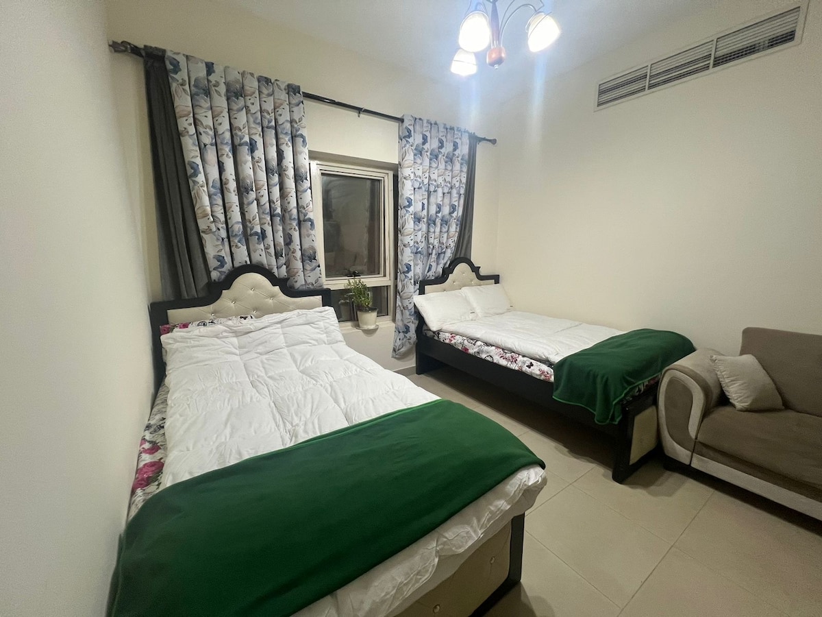 Mag - enjoy kasama ang buong pamilya sa eleganteng tirahan na ito Tinatanggap namin ang lahat ng aming bisita Matatagpuan ang apartment na ito sa Emirate of Ajman nang direkta sa Sheikh Khalifa Bin Zayed Street, ang kalsadang humahantong sa Sharjah at Dubai Malapit sa Al Murad Mall Grand Mall Malapit na ang lahat, isang hakbang na lang ang layo. May mga komersyal na sentro, tanggapan ng palitan at paglalakbay, bangko, komersyal na complex at lugar ng libangan Malugod kang tinatanggap 🌹