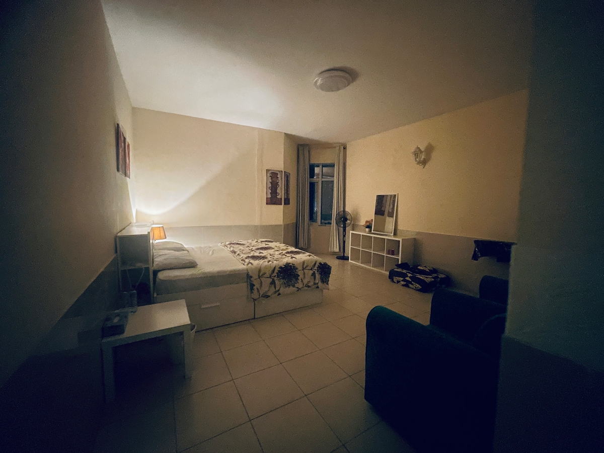 Bagong marangyang studio sa Ajman One Towers na may nakamamanghang tanawin ng dagat at maikling lakad lang papunta sa beach. Napapalibutan ang studio ng mga restawran, cafe, at lahat ng pangunahing kailangan sa araw - araw. Kumpleto ang kagamitan para sa mga panandaliang pamamalagi o pangmatagalang pamamalagi. - Mabilis na Wifi - Air Conditioner - Nilagyan ng Kumpletong Kusina - Buong Banyo - King Size na Higaan - Smart 60 Inch TV - Sofa - Working Desk - Hapag - kainan - Dresser - Aparador - Bench ng Bagahe
