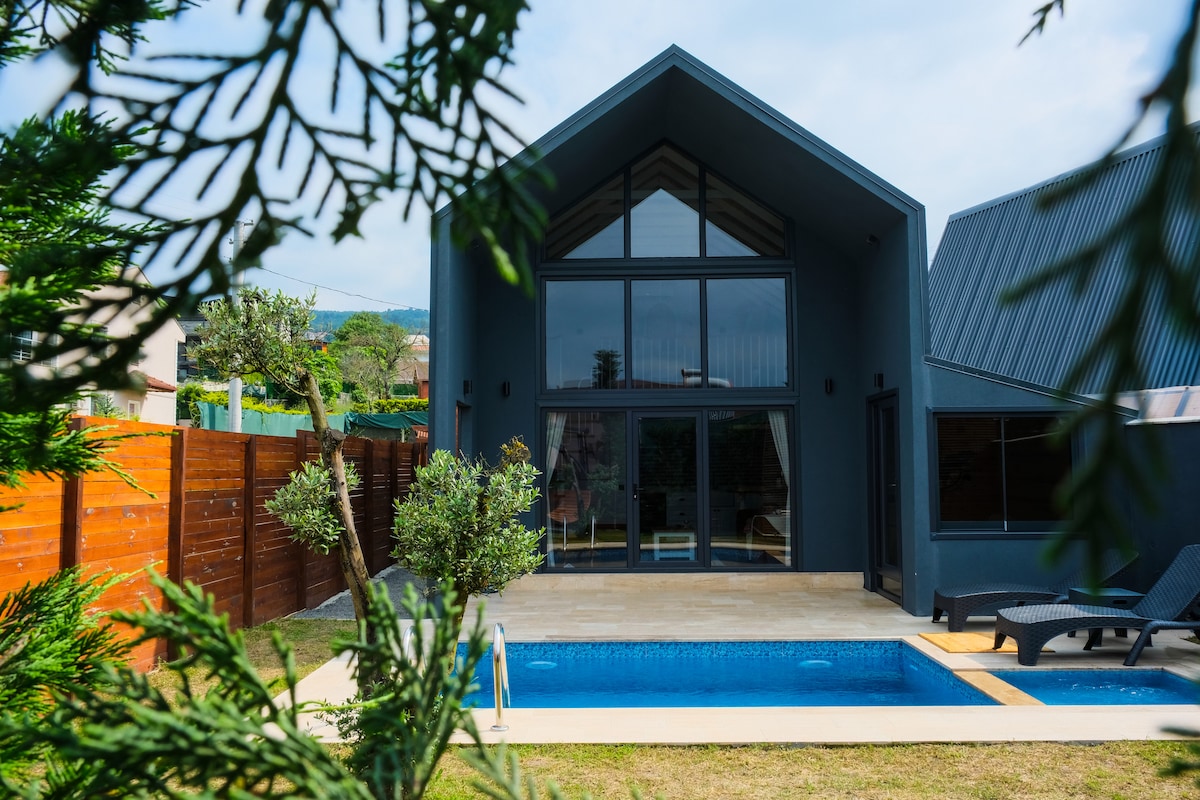 Ang aming pribadong bahay na kahoy, na matatagpuan sa gitna ng kalikasan at malayo sa stress ng lungsod, ay nag-aalok ng isang di malilimutang pananatili sa mga bisita nito sa pamamagitan ng eleganteng disenyo, pribadong swimming pool at malawak na hardin. Sa iyong sariling pribadong lugar, maaari kang magising sa umaga sa tugtog ng mga ibon, magsunog ng araw sa pool sa buong araw, at mag-enjoy sa ilalim ng mga bituin sa gabi. Ang aming bahay, na idinisenyo nang may mga modernong at komportableng detalye, ay pinagsasama ang kapayapaan ng kalikasan sa marangyang kaginhawaan.