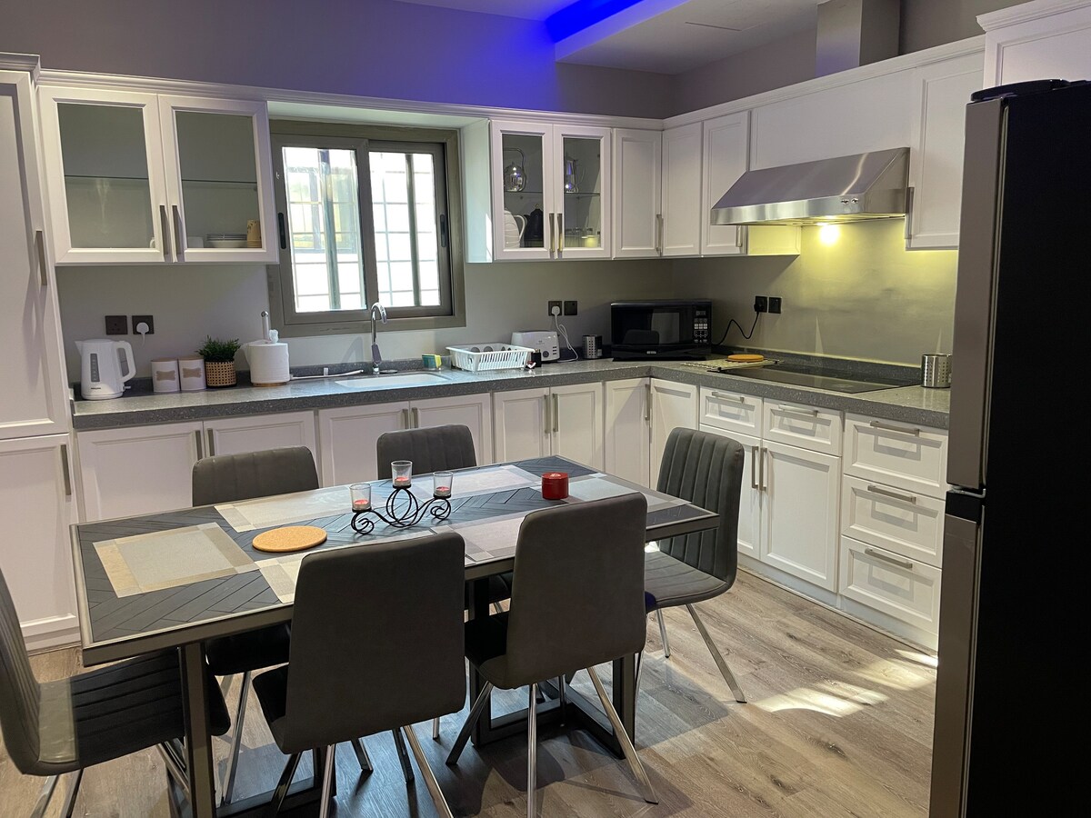 Malapit ang lokasyon ng property sa Bahrain Bridge, sa simula ng lungsod ng Al Khobar at malapit sa Dagat Aziziyah, kaya kalmado at magpahinga sa tahimik na lugar na ito. Ibinigay ang bouquet ng hospitalidad (2 - Scotch2 - Quve 2 - maliit na tubig2). May 5G Internet. May mga accessory (Hygiene Gel Bathing Liquid Shampoo Washing Hand Wash Towels 2 beses). Paglilinis at pag - sanitize kaagad pagkatapos ng bawat bisita na may pagbabago sa sapin sa higaan.