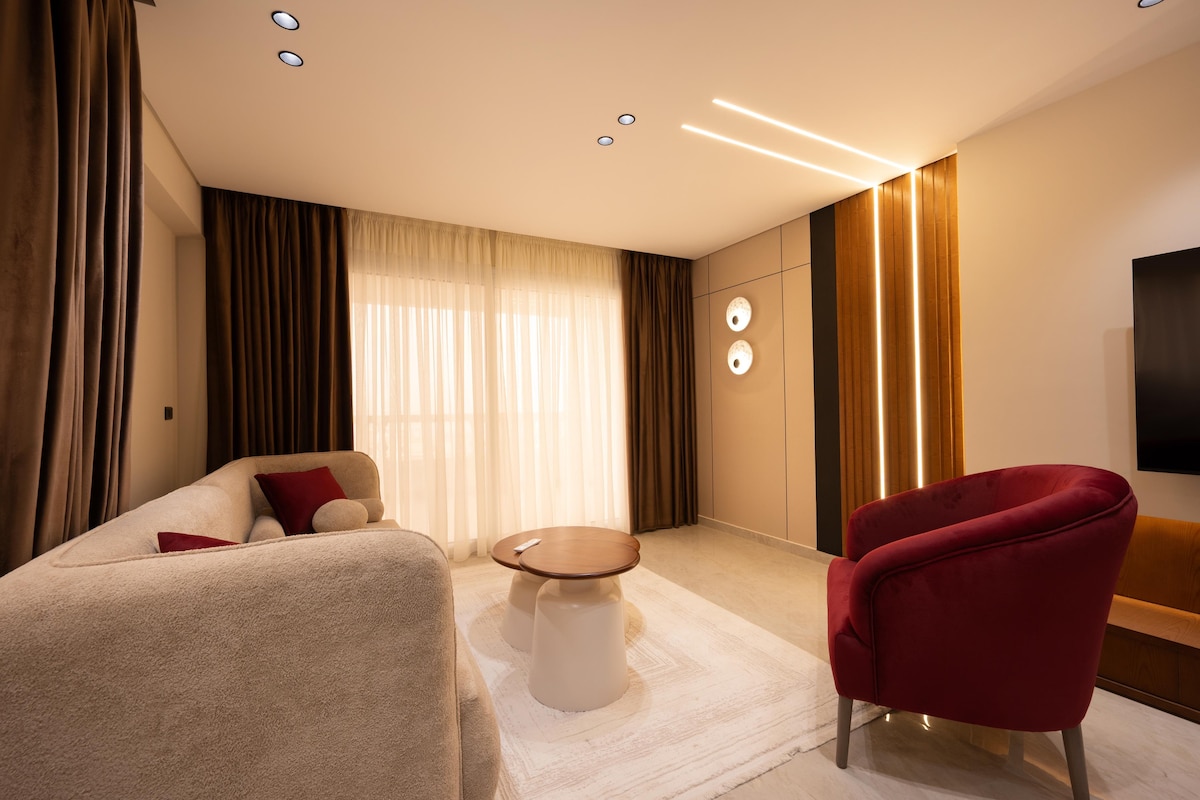 Premium 2BR hotel-style apt, bahagyang tanawin ng Nile