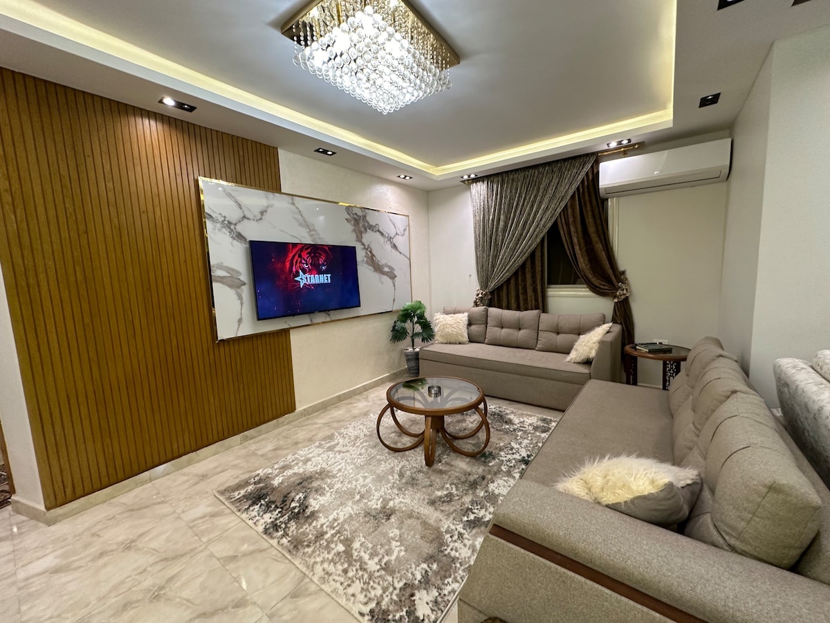 Maligayang pagdating sa iyong marangyang bakasyunan sa Giza! Ang modernong studio na ito ay perpektong iniangkop upang mag - alok ng parehong estilo at pag - andar, na pinagsasama ang kontemporaryong disenyo na may mga elemento na inspirasyon ng mayamang pamana ng Pharaonic. Matatagpuan malapit sa Great Pyramids at Great Museum, ang lugar na ito ay isang perpektong retreat para sa mga taong pinahahalagahan ang kaginhawaan na napapalibutan ng kultura.