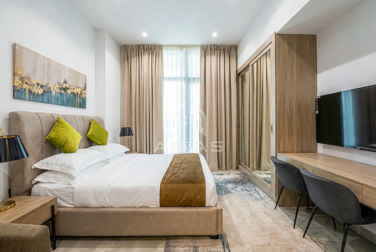 Lahat ng kailangan mo bilang komportableng tuluyan sa Dubai. Ang studio na ito ay 45sqm na may mga kumpletong amenidad, WiFi, TV, washing machine, microwave/oven, kalan at full shower bathroom na may mga materyales sa paglilinis. Isang pampamilyang compound na matatagpuan sa Dubai South, may access ka sa Dubai Expo, Marina, JVC, Al Maktoum Airport, DIP, at marami pang iba na may madaling access sa Abu Dhabi! Gusto mong bumalik muli sa bawat pagkakataon.