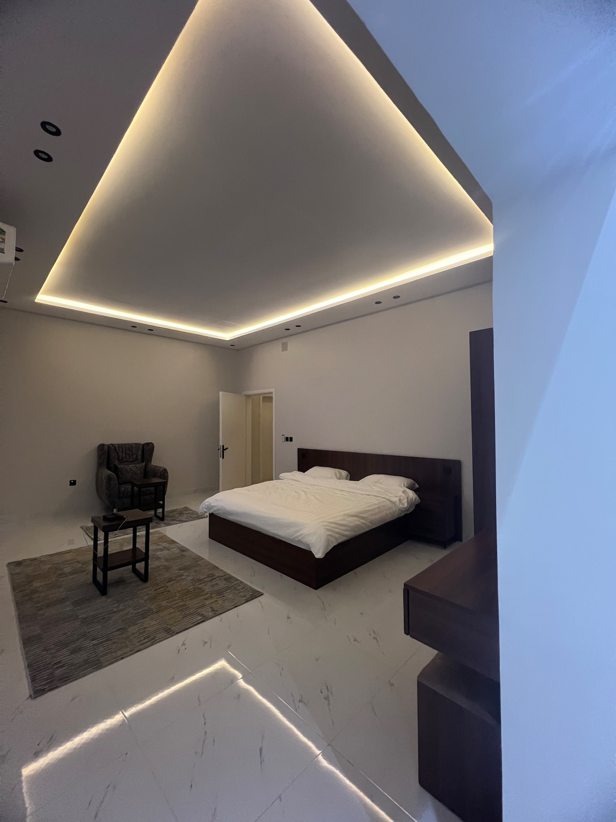 Nagtatampok ang apartment ng modernong disenyo na may kasamang kuwarto at sala, na may hiwalay na kusina na ginagarantiyahan ang privacy at kaginhawaan. Ang apartment ay may magandang tanawin ng Al - Kharj Tower, na nagbibigay ng espesyal na kagandahan sa lugar. Malaki ang tuluyan, kaya mainam ito para sa komportableng pamumuhay