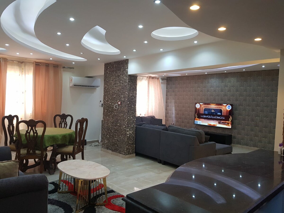 Enjoy a comfortable stay in a stylish, fully equipped apartment located in a prime area close to major attractions and services. The apartment offers all the amenities needed for a relaxing and pleasant stay, and is suitable for families, couples, and travelers for business or leisure. An ideal choice for those looking for comfort, privacy, and easy access to everything they need. استمتع بإقامة مريحة في شقة أنيقة ومجهزة بالكامل، تقع في موقع مميز قريب من أهم الأماكن والخدمات،