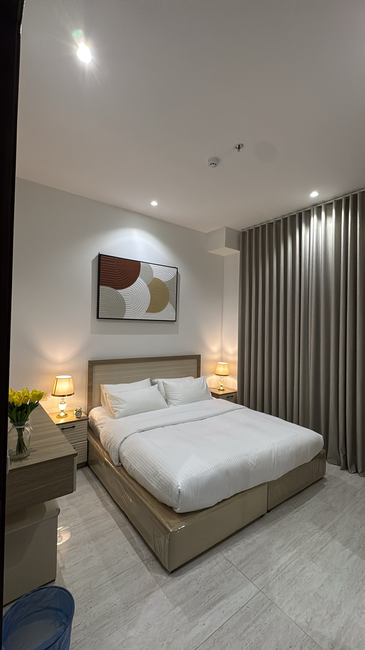 Ang tahimik at naka - istilong tuluyan na ito. Idinisenyo na may moderno at modernong estilo na nagbibigay sa iyo ng kung ano ang kailangan mo para mabuhay nang komportable at marangya. Binubuo ang apartment ng komportableng kuwarto at maluwang na living lounge, na nagbibigay ng perpektong lugar para makapagpahinga at makapagpahinga pagkatapos ng mahabang araw. Kung saan maaari kang magbasa ng mga libro at mag - enjoy sa panonood ng mga pelikula sa Netflix, naka - encrypt at libreng channel kabilang ang lahat ng sports channel. Nagtatampok din ang lokasyon ng tirahan ng madaling access sa iba 't ibang serbisyo at pasilidad.