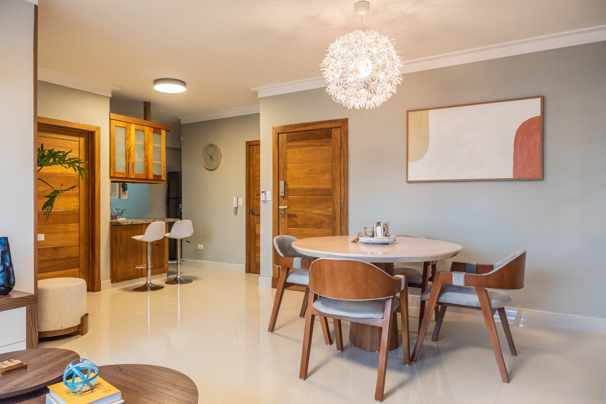 Masiyahan sa katahimikan at komportableng estilo ng aming Apartment na matatagpuan sa isang tahimik na kalye sa gitna at eksklusibong sektor ng Naco sa Lungsod ng Sto Dgo. Malapit sa mga pangunahing shopping center at ospital sa lungsod. Ilang minutong lakad, mayroon kang mga supermarket, gym, restawran, bangko, parmasya, beauty salon, atbp.