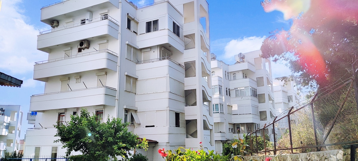 malapit lang ang apartment sa kleopatra beach. third bulding to beach.and also walking distance to city. you can go city by bus too in 5min. there is bus all day. Bagong renovation apartment na may scandinavian design. fullfurnished. 3 aircondition. walang limitasyong internet. Android tv (netflix,youtube). mayroon itong napakalaking balkonahe na may tanawin ng dagat at bundok. tumawid sa gusali may malaking migros at apotheke. maigsing distansya papunta sa istasyon ng bus din. malaking sala at hiwalay na kusina.elovator. libreng otopark.