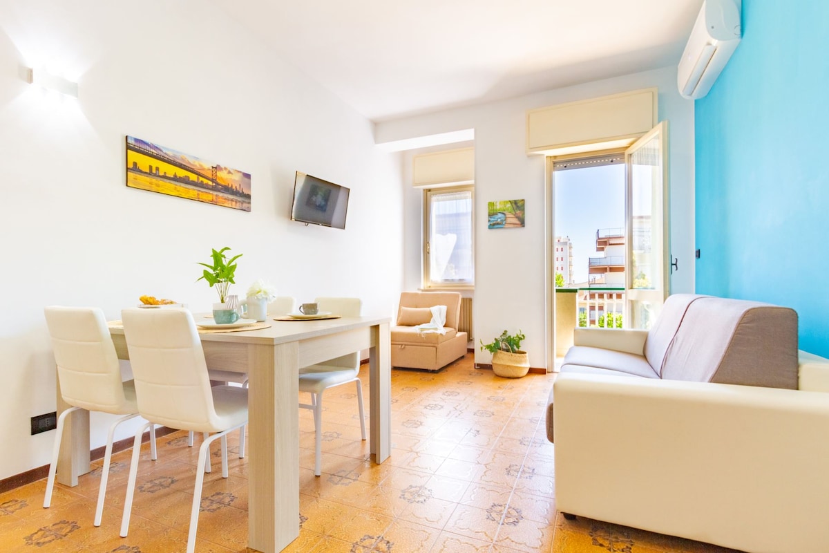 200 metro ang layo ng apartment ko mula sa mga beach facility at mula sa supermarket, pharmacy, restaurant, pizzeria, bar, at entertainment venue. Matatagpuan ito 10 minutong lakad mula sa sentro ng lungsod (600m). Walang elevator pero nasa unang palapag ito. May WiFi, mga sapin at tuwalya, plantsa, mga toiletry at hairdryer. Bago at kumpleto sa gamit na kusina. Mayroon akong isang pribadong paradahan o mayroon ding pampubliko at libreng paradahan sa kalye.