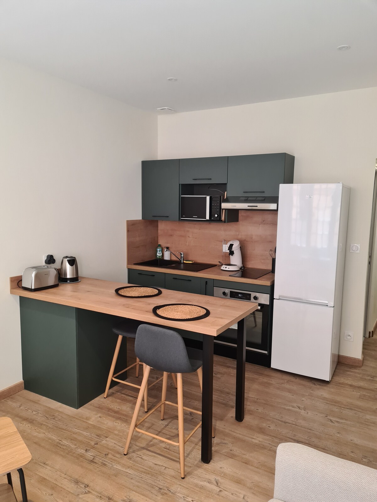 Coquet T2 climatisé situé à 5 minutes à pied du cœur de la cité Épiscopale d'Albi. Vous logerez dans un appartement résidentiel composé de : - une grande chambre avec un lit en 140/190, un double placard penderie (suffisamment d'espace pour un lit bébé mais non fourni) - une kitchenette équipée: plaques de cuisson, petit frigo, micro-ondes, cafetière, - un salon avec clic-clac et télévision, - une salle de bain et un WC séparé (serviettes de toilettes non fournies), - pas de WIFI désolé :)