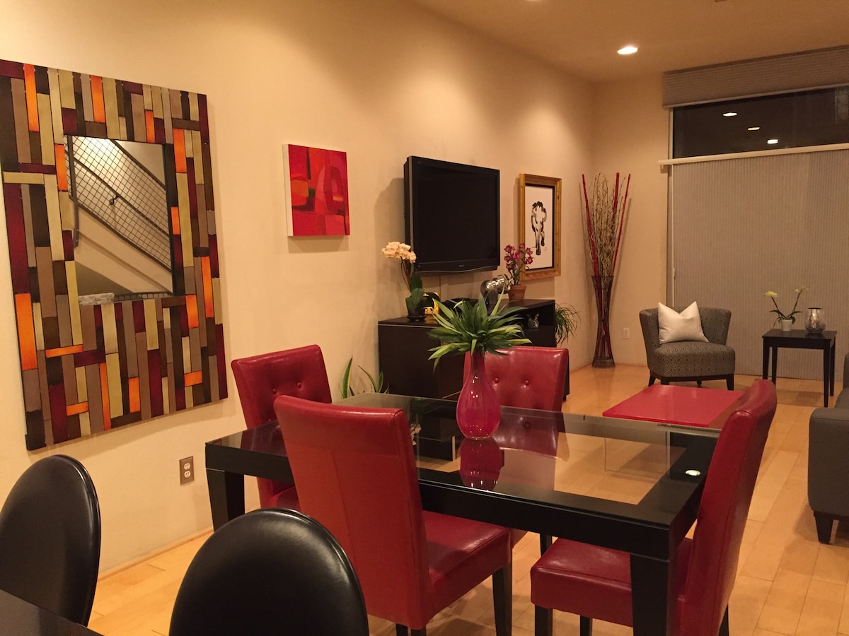 🏙️ Modern, 3-story loft in the heart of downtown. Quiet neighborhood with a beautiful community courtyard private access. Minutes away from local hot spots, concert venues, restaurants & hospitals. Quick access to major highways (I-40 & I-25), 10 minutes from the airport & walking distance to mass transit. This property is perfect & convenient for adventurers, business/medical workers, couples, or single travelers!
