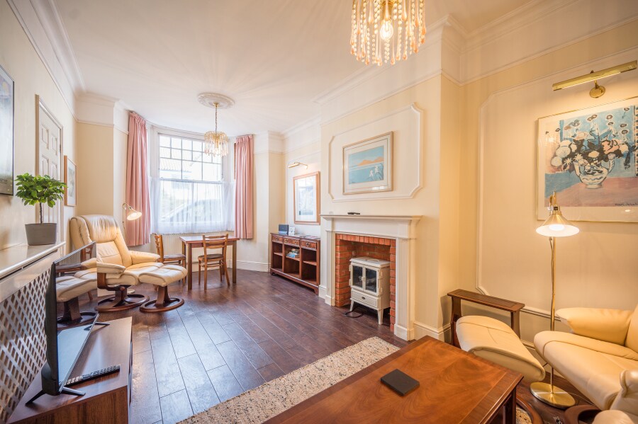 Puwede ang isang maliit na aso: kumpirmahin bago mag‑book. Hindi lubos na nailalarawan ng "Bahay" ang natatanging property na ito, pero nasa iisang palapag ang karamihan ng mga kuwarto. Maestilo, maaliwalas, at mukhang pribadong tuluyan na may tanawin ng beach at dagat—perpektong lokasyon sa gitna ng Aldeburgh. Malapit sa sinaunang Moot Hall, humigit‑kumulang 60 segundong lakad papunta sa beach, boat pond, at 2 minuto papunta sa isa sa mga pinakamagandang tindahan ng fish and chips sa lugar, sa Co‑op (maginhawang bukas nang matagal), at sa iba pang magagandang tindahan, restawran, at sinehan.