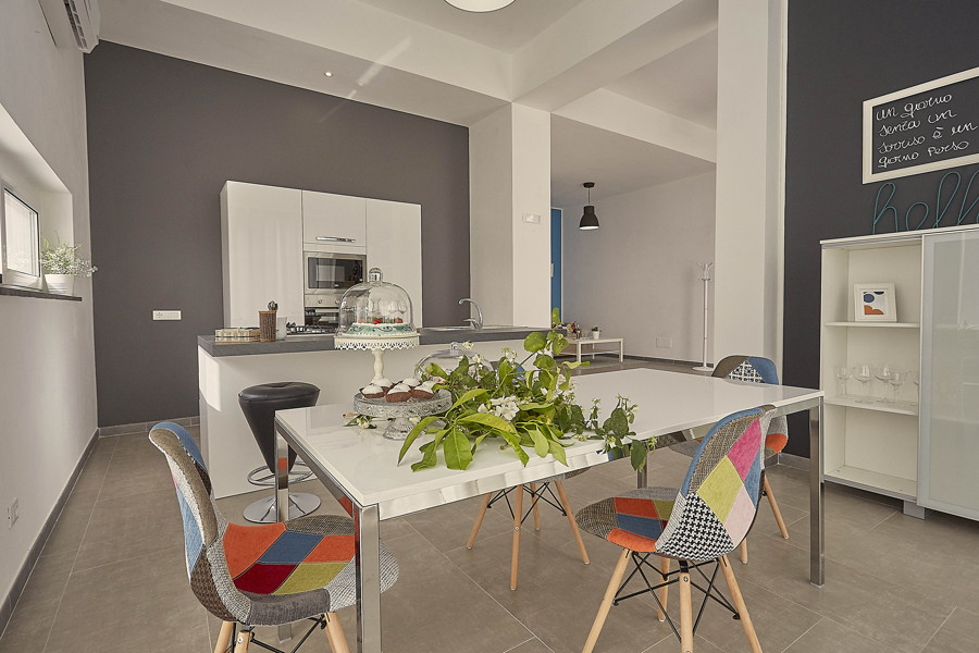 Ang malaking apartment (mga 200 metro kuwadrado) na may magagandang tapusin ay may tatlong malaki at eleganteng silid - tulugan na may pribadong banyo, kusina na may induction stove, dining room, sala, terrace. Mayroon itong pinalamutian na sahig, mga pader na may mga orihinal na bahagi ng bato, klasikong dekorasyon na may mga piraso ng mga antigo. Matatagpuan ito sa isang sinaunang gusali kung saan matatanaw ang isang katangian ng hagdan sa gitna ng downtown, ilang hakbang mula sa Via Atenea, ang pinakamaganda at eleganteng kalye sa lungsod.