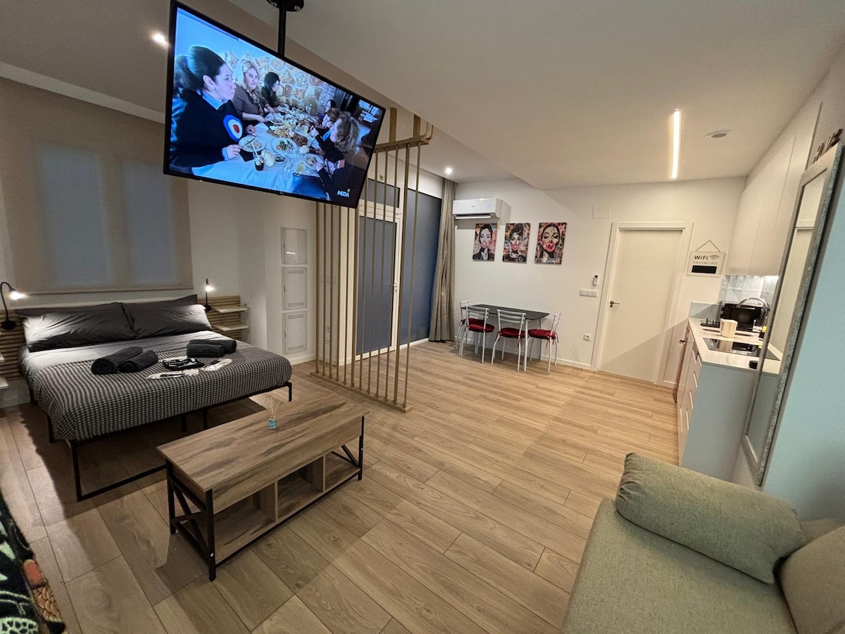 Ang studio sa Valencia ay maaaring tumanggap ng 2 tao, na matatagpuan malapit sa Hospital la Fe ay malapit sa 10 minutong biyahe papunta sa Lungsod ng Sining at Agham at 15 minutong biyahe papunta sa sentro ng lungsod, sa palagay namin ay magugustuhan namin ito! Ang lapad ng studio ay nagbibigay - daan para sa isang pleksibleng layout, na perpekto para sa mga naghahanap ng kaginhawaan at estilo sa panahon ng kanilang pamamalagi sa Valencia. Binabaha ng natural na liwanag ang tuluyan salamat sa malalaking bintana, na lumilikha ng mainit at magiliw na kapaligiran.