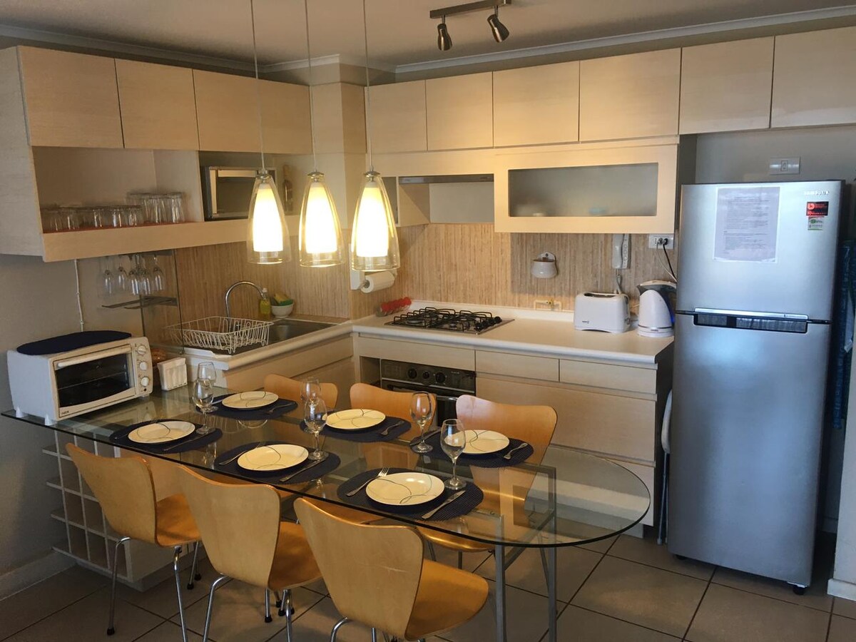 Isang perpektong lugar para makatakas sa gawain ng lungsod at makapagpahinga nang mabuti, na may lahat ng kailangan mo para magkaroon ng kaaya - ayang pamamalagi, na may access sa artipisyal na lagoon, swimming pool, sports court na masisiyahan bilang isang pamilya at maraming karagdagang atraksyon, sa isang condominium na matatagpuan sa pinakamagandang sektor ng Algarrobo.