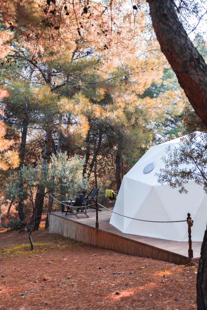 Foça'nın şirin köyü Kozbeyli'de çam ve zeytin ağaçları içerisinde gizlenmiş Glamping çadırlarımız size eşsiz bir doğa tatili fırsatı sunuyor. Özel tasarımıyla içerisindeyken dahi doğayla bağınızın kopmadığı çadırlarımızda, şeffaf tavanı sayesinde yıldızları izleyerek uyuyacaksınız. Kuş sesleri eşliğinde uyanacağınız Glamping çadırlarımızda, size özel geniş ahşap terasta zengin çeşitli ve doğal yiyeceklerimizin tadına bakabilirsiniz.