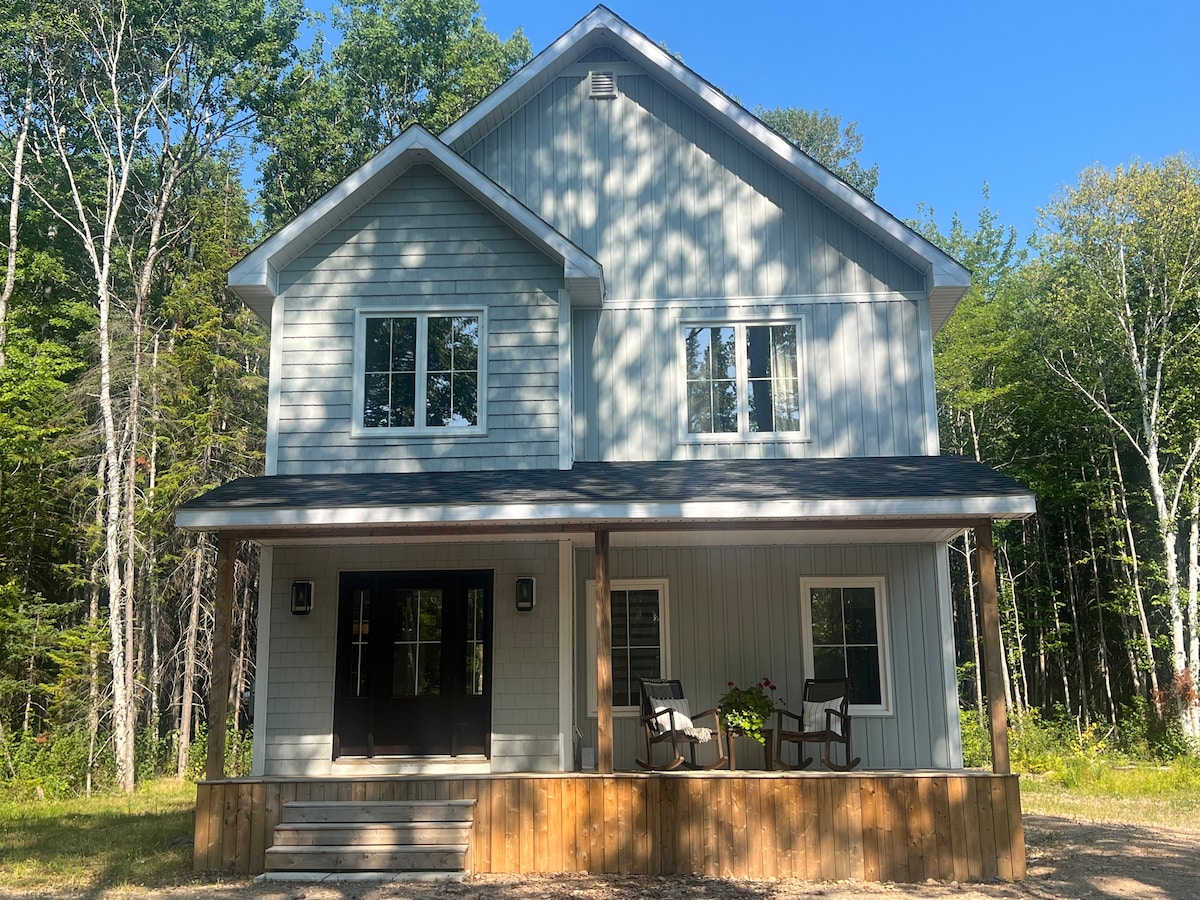 Tumakas papunta sa bagong itinayong buong tuluyan na ito, ilang minuto lang mula sa trail ng snowmobile (maa - access ang ATV sa tag - init). Perpekto para sa mga mahilig sa labas, nag - aalok ang property na ito ng kaginhawaan at kaginhawaan sa buong taon. Masiyahan sa iyong mga umaga at gabi sa tahimik na beranda sa harap kung saan matatanaw ang gubat. Tandaan: hindi naka - landscape ang bakuran. Narito ka man para sa mga trail, tanawin, o tahimik na bakasyunan, handa nang tanggapin ka ng tuluyang ito.
