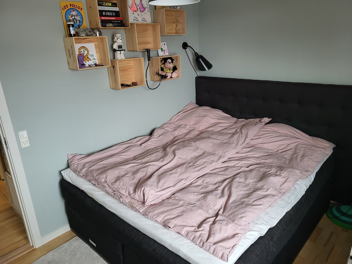 Fin bolig med plads til sjov og ballade. Der er 4 værelser (det ene uden seng), 1 stort badeværelse og 1 toilet. Der er en fin lille have med trampolin, gasgrill og havebord, sofa og stole. Der er åbent køkken, alrum, stue. alt er i fin stand og godt indrettet. Gulvet knirker dog lidt og dørene binder, da det jo ikke er et nyt hus. Men er er fint og rart at være. I får huset alene, men når det ikke er lejet ud, bor jeg her selv med mine to børn. Der vil derfor været private ting i boligen.