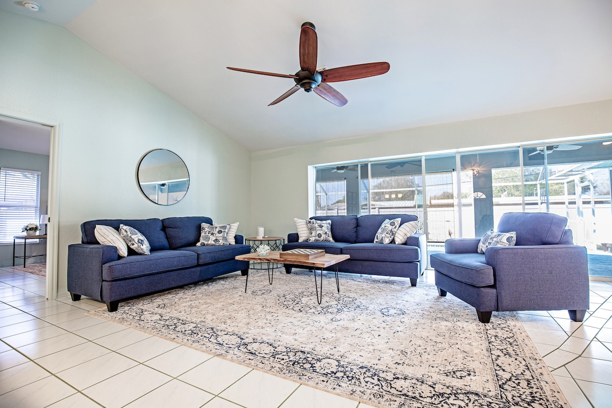 Ilang minuto lang ang layo ng magandang tuluyan na ito mula sa beach ng 2 maluluwag na king bedroom, queen sofa bed sa malaking bukas na sala, at kumpletong kusina na handa nang maglibang. Ipunin ang iyong pamilya sa hapag - kainan para sa pagkain at mga laro at pagkatapos ay magrelaks sa lanai o lumutang sa pool. Nagbibigay ang mga host ng Margaritaville frozen concoction machine, 2 bisikleta, mga upuan sa beach, mga tuwalya sa beach, mga tool sa ngipin ng pating, at marami pang iba.